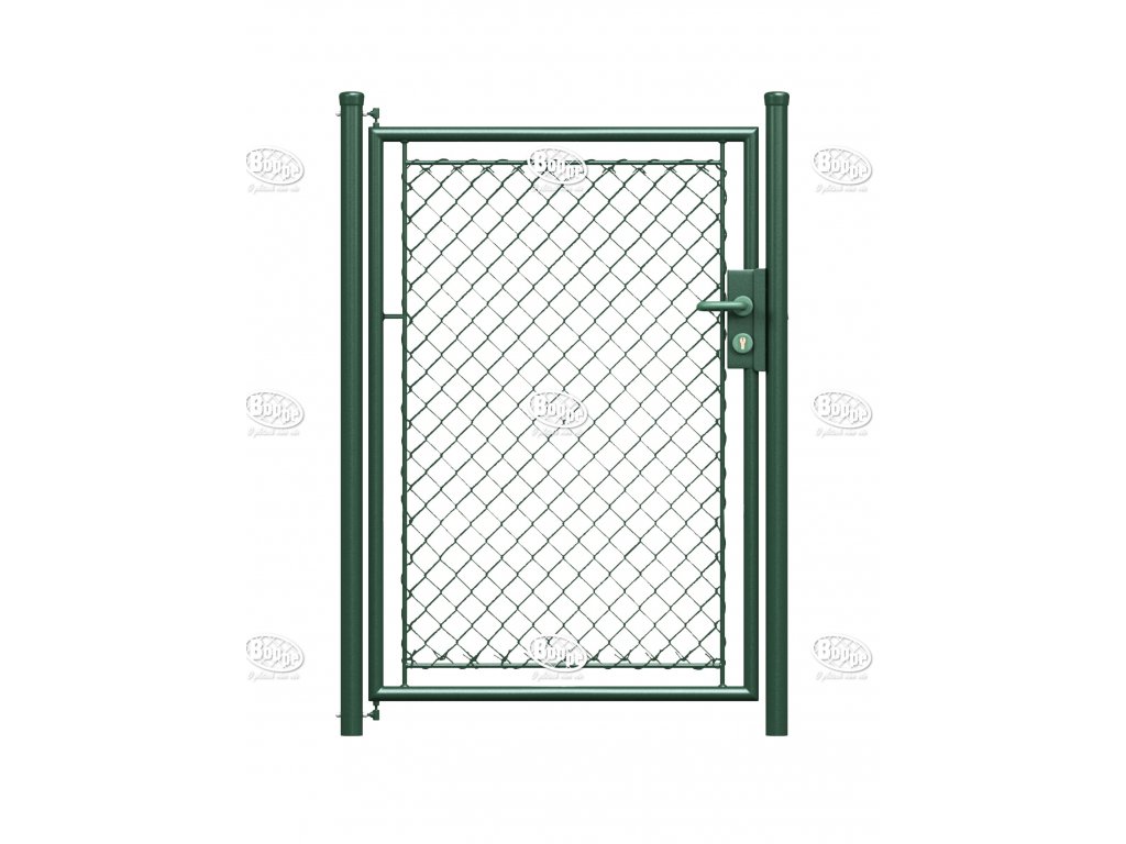 Branka je vyrobena z pozinkovaných trubek. Má zavírání na kliku se zámkem pro vložku FAB. Výplet je poplastované antracitové pletivo. Součástí branky je 1 pantový a 1 dorazový sloupek o průměru 60mm, 2kusy stavitelných pantů, zámek, klika a dorazový díl se šroubem. Dorazový díl branky je otočný, lze ji tedy použít jako pravou i levou. Povrchová úprava je prováděna práškovým lakováním zelenou barvou RAL 6005. Standardní šíře branky je 100cm.
